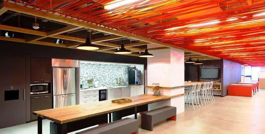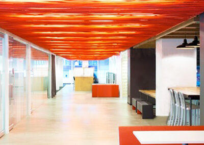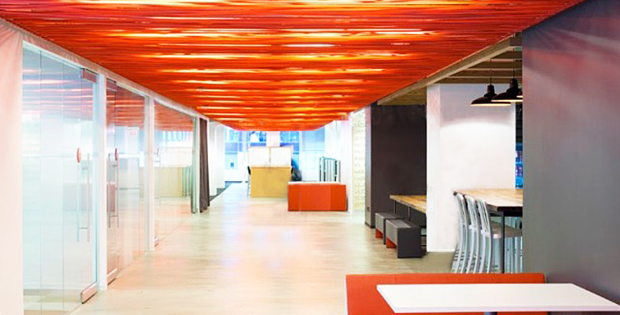 Drywall, acoustical ceilings, and Rope Ceiling fire rated red rope ceiling built on a unistrut frame