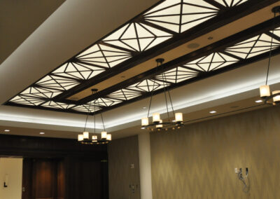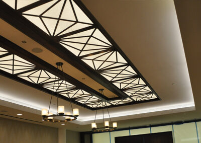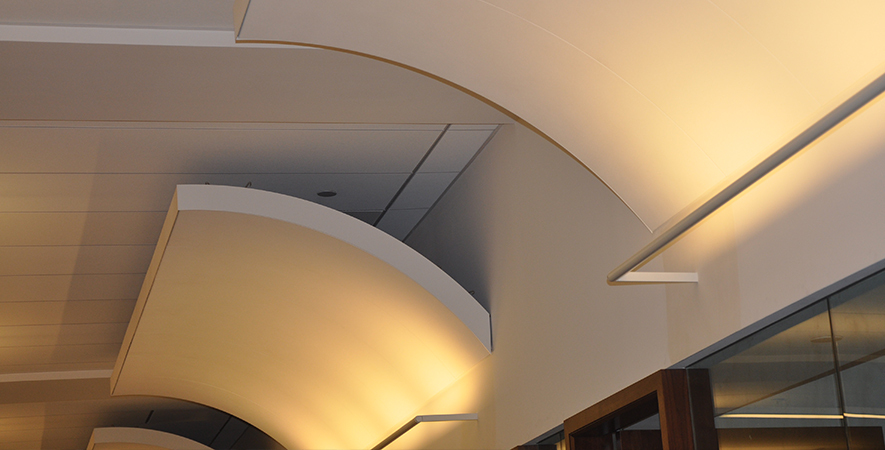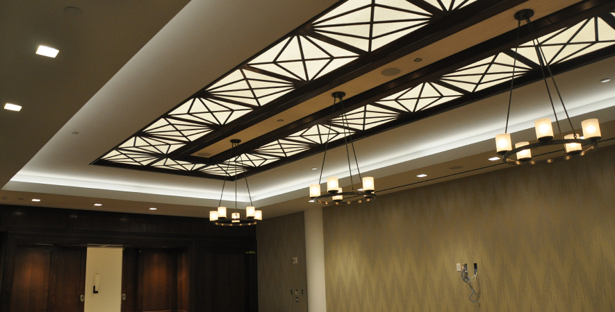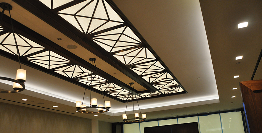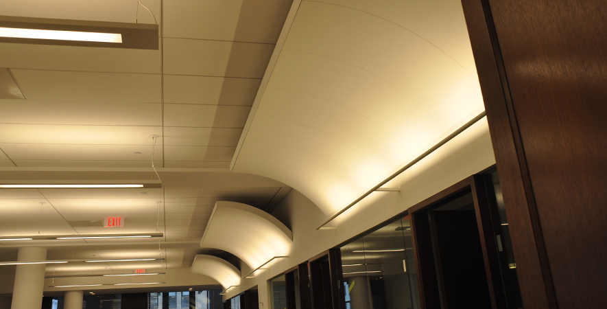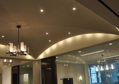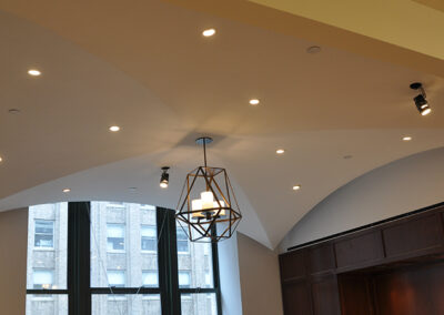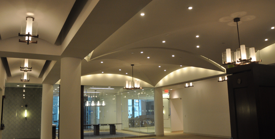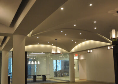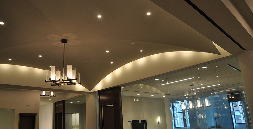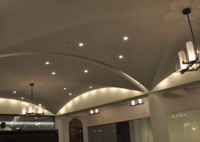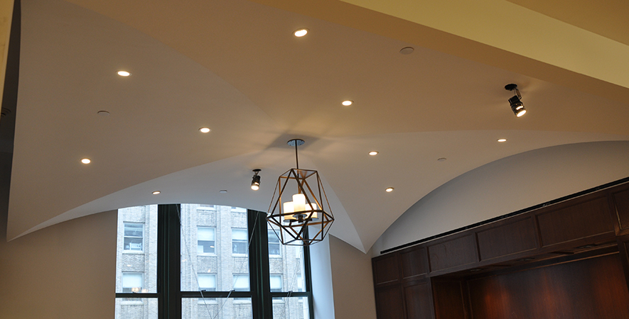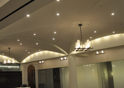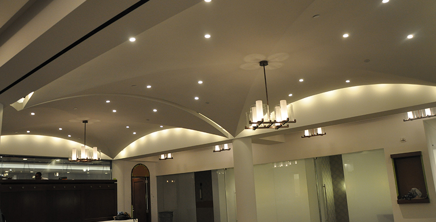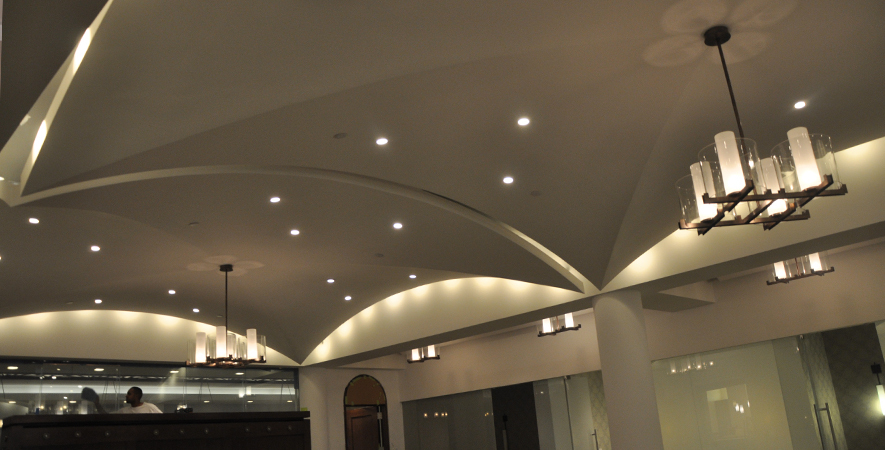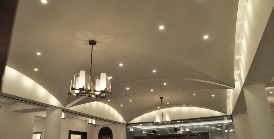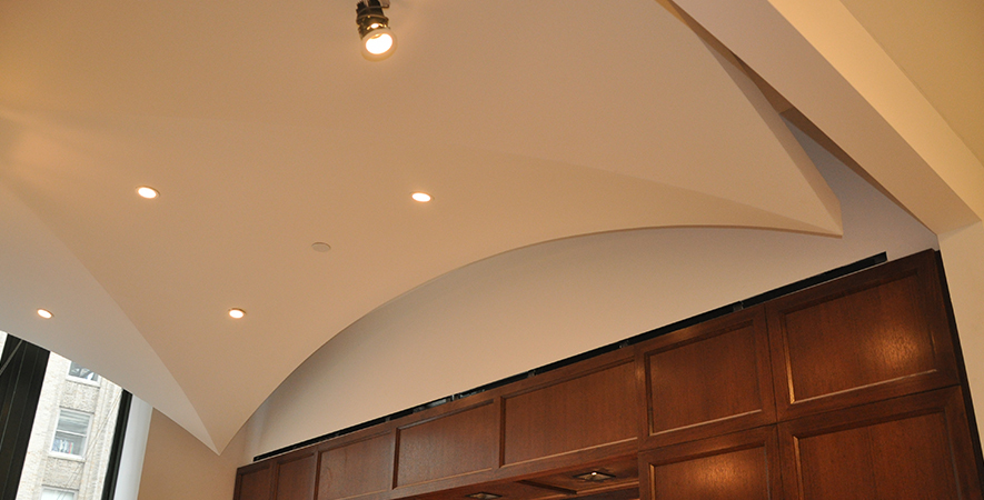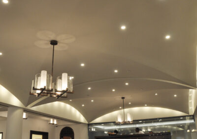 Drywall, acoustical ceilings, Armstrong cloud ceiling system, and Groin vault and coffered Star Silent plaster ceiling