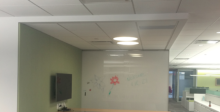 Drywall, acoustical ceilings, curved soffits, axiom trim