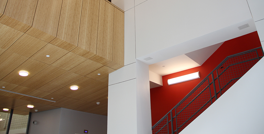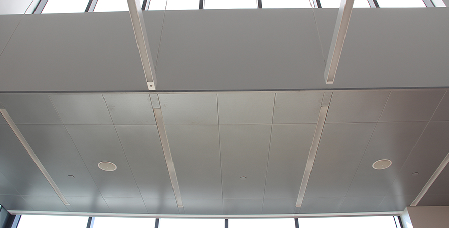 Drywall, ceilings, hollow metal frames and hardware, exterior metal panel ceilings, interior custom metal panel ceilings, Armstrong wood panel ceilings, soffit and fascia.