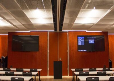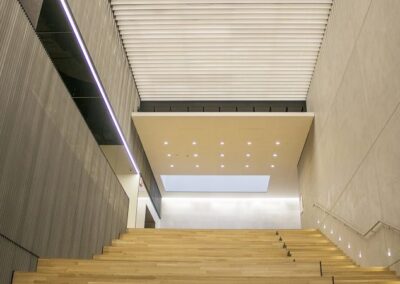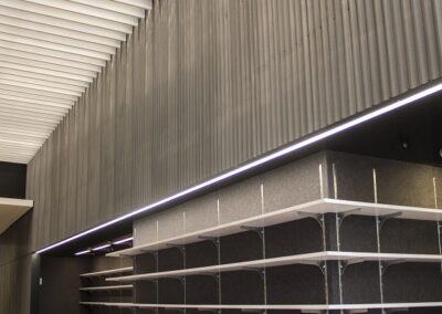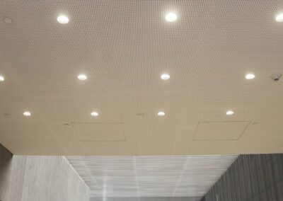Drywall, ceilings, metal mesh ceilings, Lindner ceilings baffle, RPG wood panel system, Pyrok ceilings panels, light gauge metal frames for bleachers, furnish and install doors, frames and hardware.