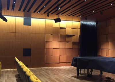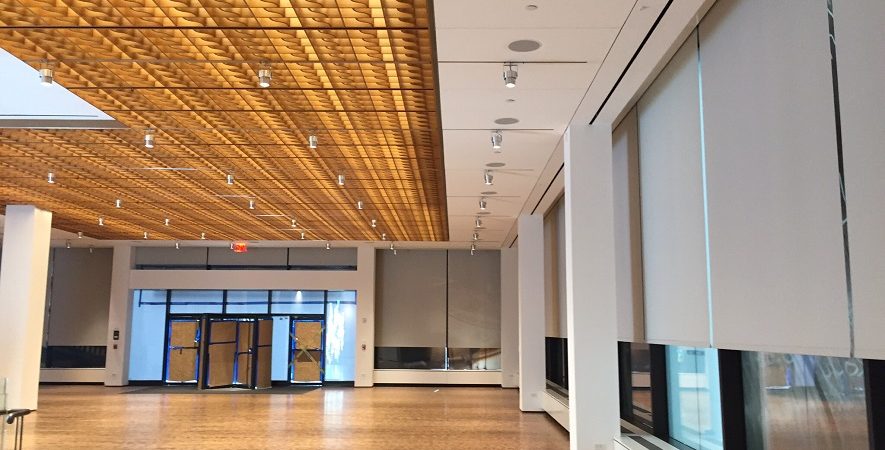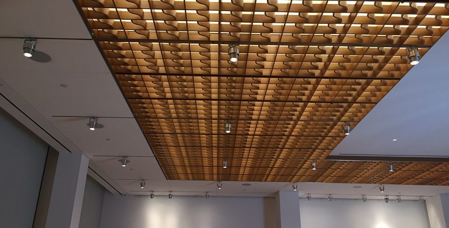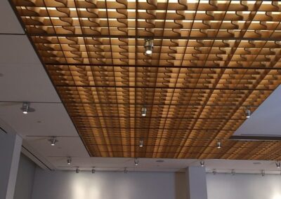 Drywall, ceilings, custom wood walls, prefab, custom wood ceilings, Decoustics ceiling, window pockets, GFG sprinkler escutcheon, gypsorb perforated gypsum ceiling, shaker wood panel walls, linear wood ceilings, custom curved wood ceilings.